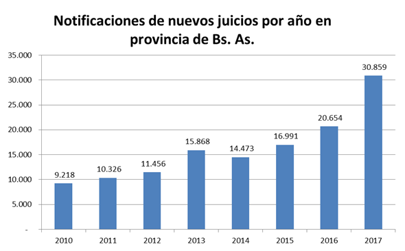 Según advirtió la UART, mientras que a nivel país el aumento de juicios mayo/17 contra mayo/16 fue del 20%, en la provincia de Buenos Aires fue del 104%, acumulando así en los primeros 5 meses del año un 49%, versus un 24% del total país.
